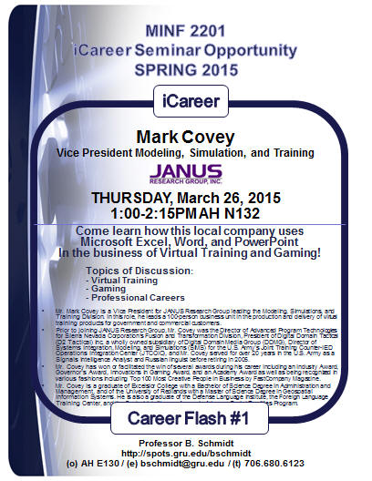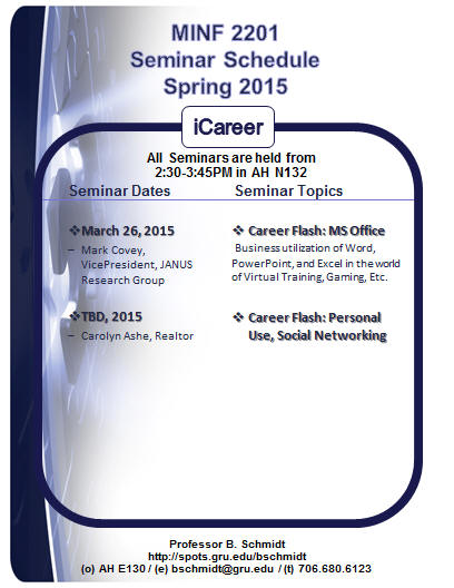 icareer SEMINARS SPRING 2015 - MINF2201: Microcomputer Applications Professor Schmidt's MIS/CS courses |