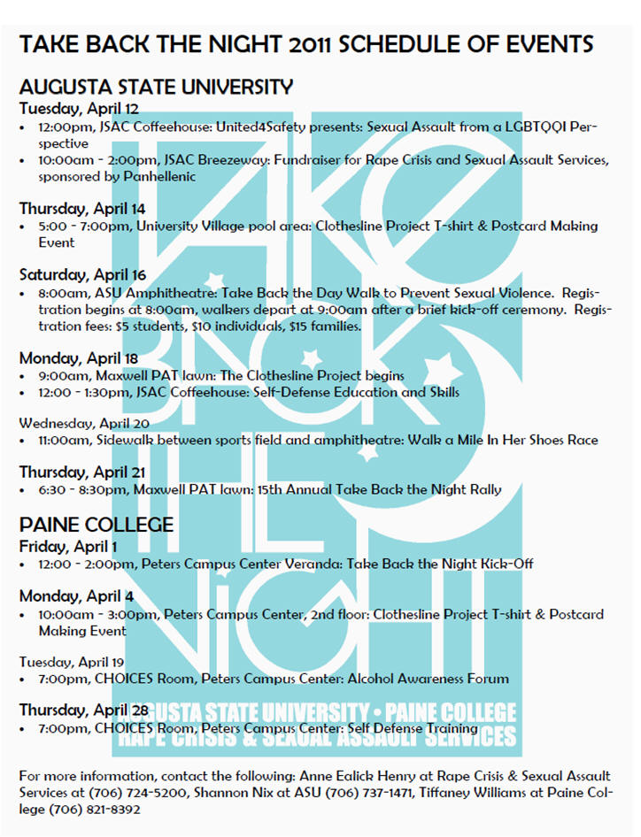 event (for Clothesline Project), 5-7pm, University Village pool area