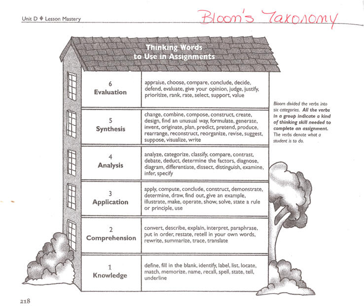 THESE action WORDS DESCRIBE THE LEVEL OF THOUGHT REQUIRED