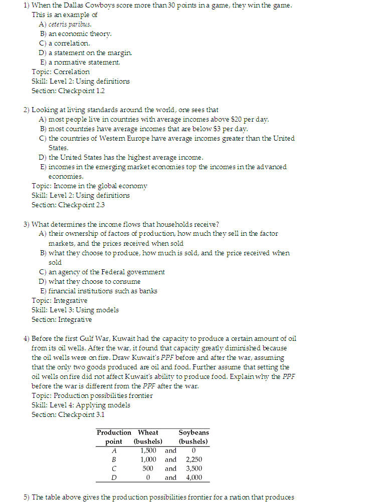 Macro Sample Questions for Exam 1