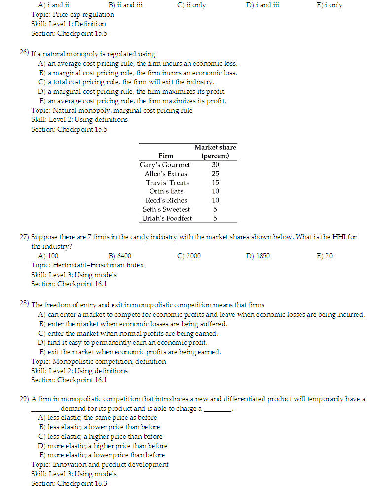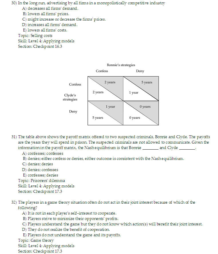 Micro Sample Questions for Exam 4