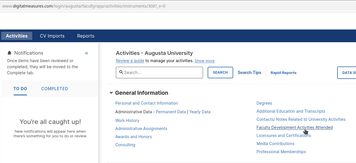 Go to Pact, enter your credentials, then click, under “General Information”, on “Faculty Development Activities Attended”: