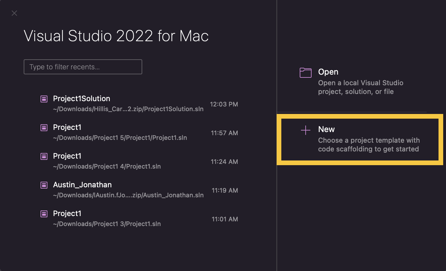 File > New > Projectin the IDE menuFile > New Solutionin the IDE menu