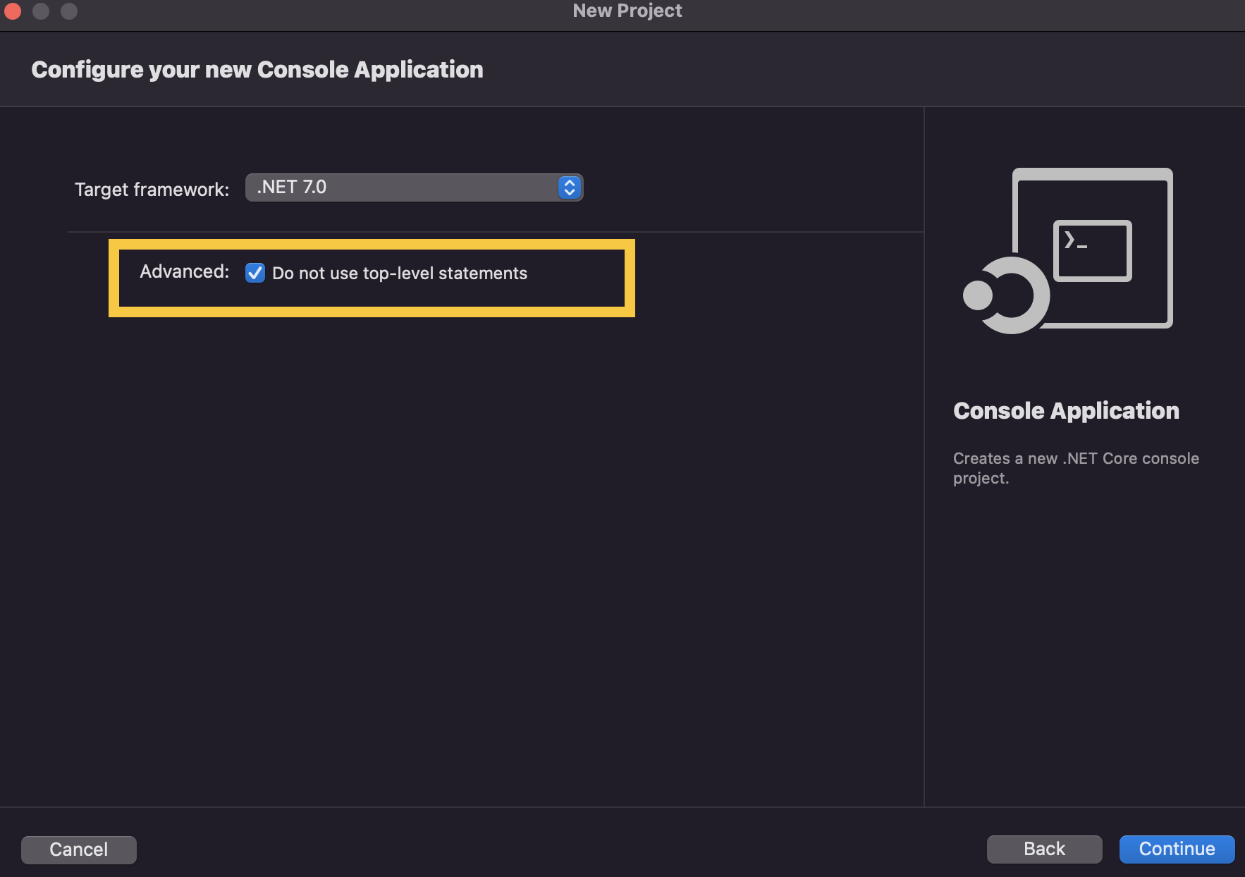 you do not use top-level statements (so, this following box